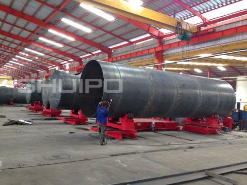自調(diào)式異形筒體滾輪架是一種適用于焊接管道、容器、油罐等圓筒形 矩形工件的專用焊接輔助機(jī)械,廣泛應(yīng)用在制管業(yè)、壓力容器制造業(yè)、金屬結(jié)構(gòu)焊接加工業(yè)、重型機(jī)械制造業(yè)等的現(xiàn)代加工行業(yè)中。我公司滾輪架的滾輪旋轉(zhuǎn)采用交流電機(jī)驅(qū)動、變頻調(diào)速,具有調(diào)速范圍寬,轉(zhuǎn)動平穩(wěn)性好,低速特性硬等特點(diǎn)。與操作機(jī)、焊接變位機(jī)、埋弧焊機(jī)等設(shè)備配合使用,可對工件進(jìn)行環(huán)縫焊接及縱縫焊接,可提高焊接生產(chǎn)速度并使焊接質(zhì)量保持穩(wěn)定,顯著減少了焊接輔助時間、降低了工人的勞動強(qiáng)度、改善工作環(huán)境、提高生產(chǎn)率。